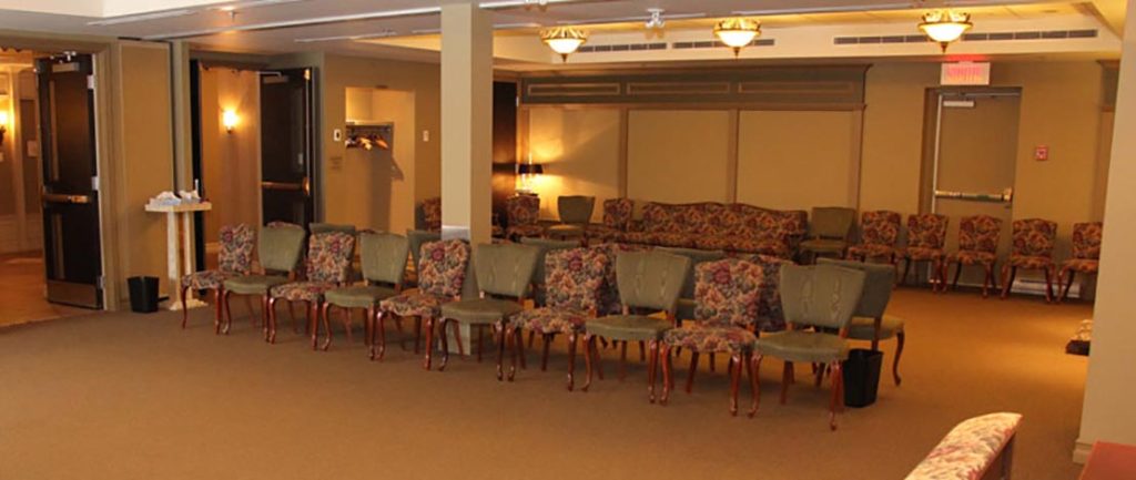 Finalement au troisième étage lorsque vous sortez de l’ascenseur, à votre gauche vous avez une grande salle de réception pouvant accueillir jusqu’à 125 personnes, et une autre salle à votre droite pouvant accueillir jusqu’à 65 personnes. En cas de besoin, l’étage entier peut être loué à une seule famille. Chaque salle dispose de son propre bar ; le centre funéraire détient son permis pour l’alcool. Chaque famille est libre soit de faire affaires avec son propre traiteur, ou nous pouvons commander directement de notre fournisseur.